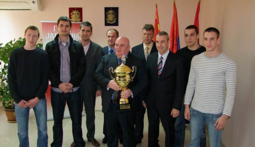 Поводом уласка у Прву лигу Србије, градоначелник Јагодине Драган Марковић Палма, приредио пријем за мушки КК „Јагодина“
