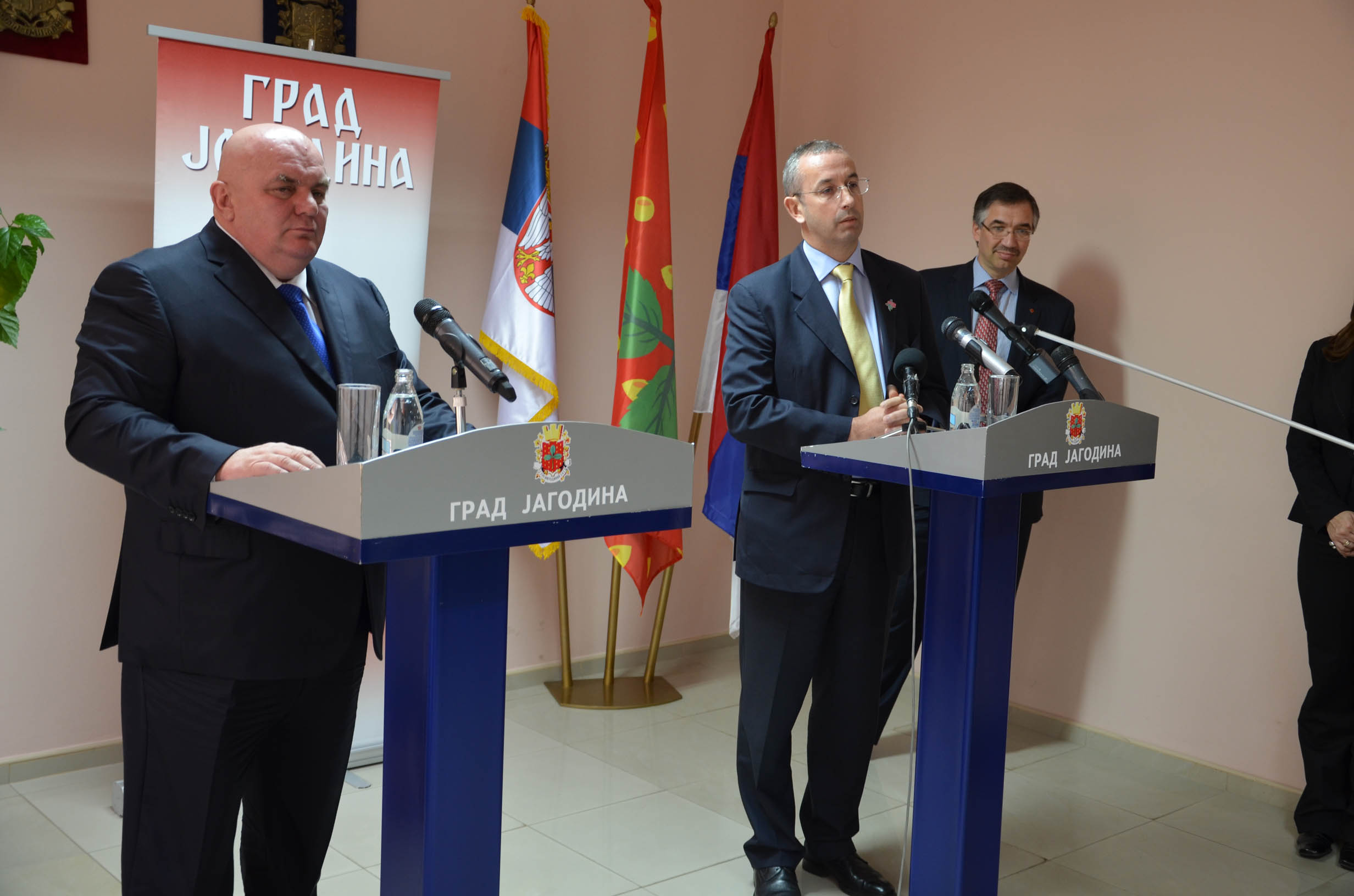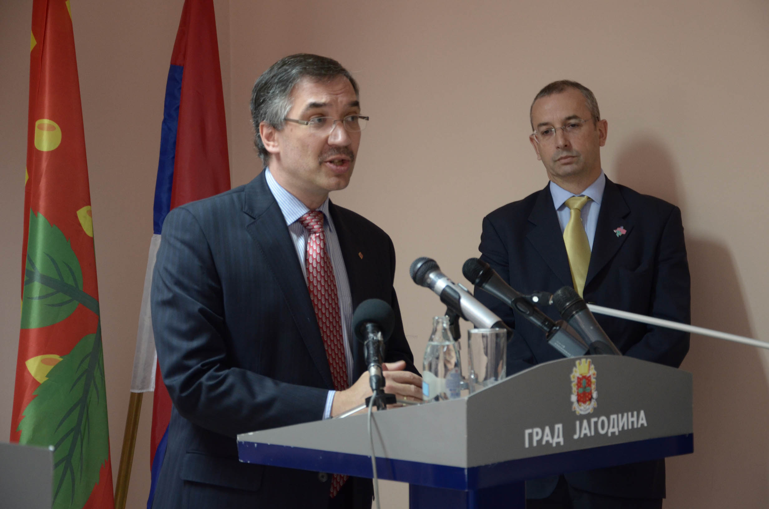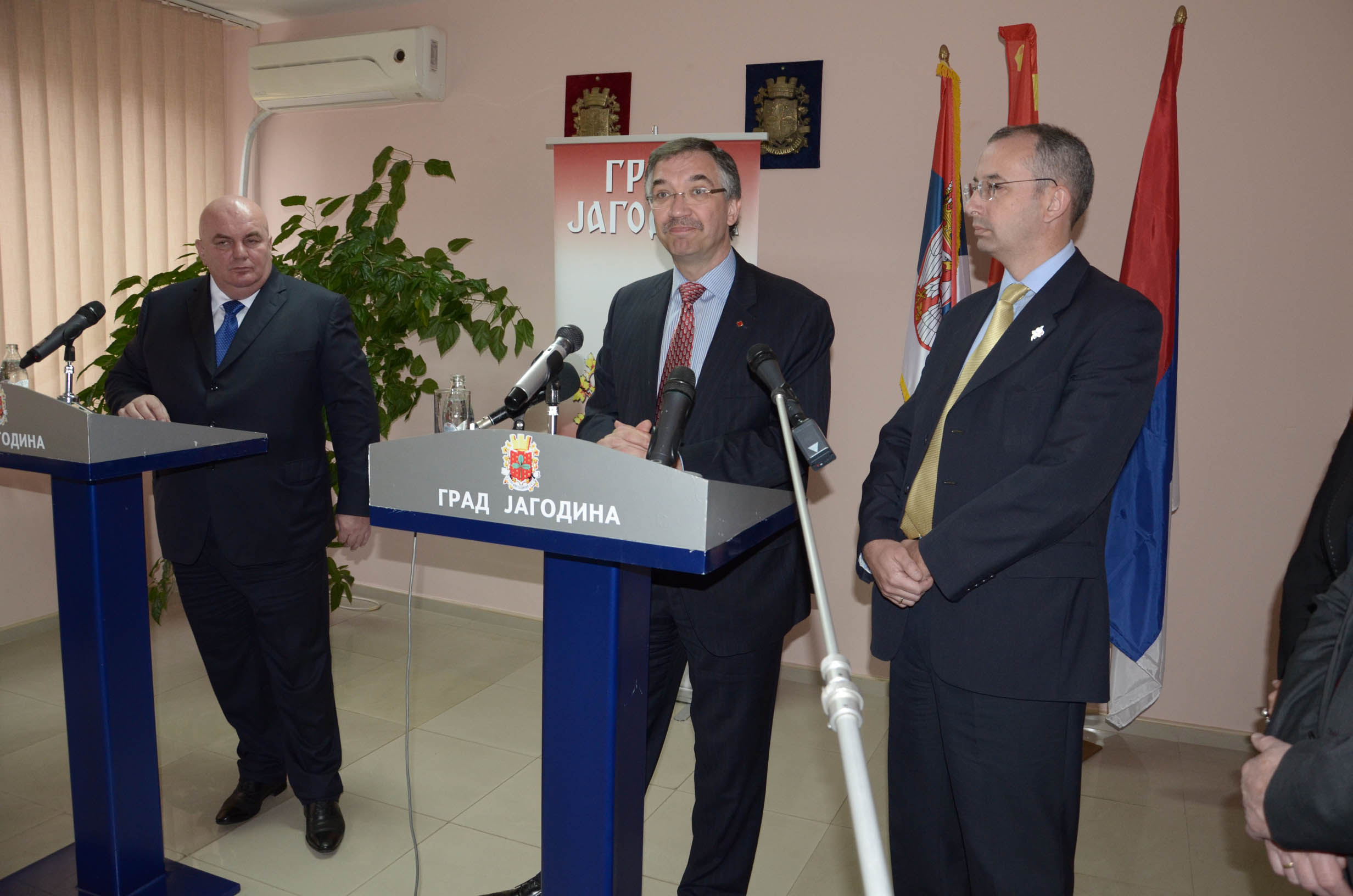 Након разговора амбасадора Велике Британије и Канаде у кабинету председника Скупштине града Јагодина Драгана Марковића Палме, који је високе званице овом приликом упознао са свим активностима које град реализује на пољу развоја привреде, социјалне политике, образовања, културе и спорта, одржана је заједничка конференција за новинаре на којој је Марковић посебно изразио захвалност Великој Британији и Канади што не траже од  Србије да  призна независност Косова и Метохије . „За Србију је веома важно питање када ће постати чланица европске породице. Ове две земље, већ више година, директно и индиректно помажу Србији,  ми смо испунили све што је била наша међународна обавеза и сада чекамо од Европе да одреди датум преговора. Ја сам у разговорима такође нагласио да ће ова Влада на челу са својим председником Ивицом Дачићем, реализовати све оно што је договорила претходна власт са Приштином, у присуству међународног  представника и сигуран сам да неће бити неких великих захтева када је у питању Србија у наредном периоду, на будућим  преговорима у Бриселу Хашима Тачија и Ивице Дачића“ рекао је Марковић и констатовао да Србија има добру будућност и да ће веома брзо ући у ЕУ. Он је додао да је Србији стало до мишљења Велике Британије и Канаде које могу, како је рекао,  својим ставом да допринесу формирању слике о Србији,  да није онаква каквом је поједини представљају, већ да има  политичку стабилност јер има стабилну већину у парламенту и међународну популарност свог председника Томислава Николића, као и председника и првог потпредседника Владе. „Јагодина је ушла у Европу још пре пет година јер имамо све што имају и развијене државе тако да очекујемо, почетком наредне године, коначан датум за преговоре и очекујемо већи број страних инвеститора,  јер Србија нуди пореске олакшице и најбоље услове у односу на све земље у окружењу које не дају, као наша држава, одређена средства страним инвеститорима по запосленом раднику“ изјавио је Марковић и  додао да је и Јагодина у том смислу отворена за сарадњу и да ће након овог састанка сарадња  Велике Британије и Канаде са Јагодином, која постоји већ дужи низ година, сада бити додатно повећана. Марковић се овом приликом осврнуо и на проблем „одлива мозгова“ који има Србија, додавши да се залаже за то,  да млади људи, када заврше факултет остану у Србији. Он је позвао студенте из Велике Британије и Канаде да дођу у Јагодину, која, како је рекао, даје студентима најбоље услове за образовање, подсетивши да је ранијих година у Јагодини студирао велики број Европљана и да је жеља да поморавска престоница постане међународни универзитетски град. Захваливши се на указаном гостопримству, амбасадор Велике Британије, Мајкл Девенпорт нагласио је значај наставка пута Србије ка ЕУ и европским интеграцијама и додао да  његова земља подржава напоре и чврсто верује да ће Србија имати своје место као чланица ЕУ. Он је подсетио да Велика Британија ове године обележава 175 година дипломатских односа са Србијом што јасно говори о дугој пријатељској традицији две земље.