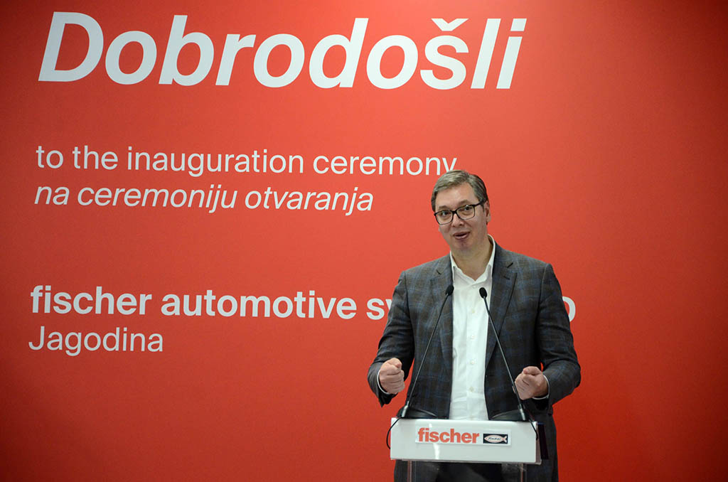 „У почетку су немачке компаније запошљавале у Србији око 17.000 људи, а сада 70.000”, истакао је председник Вучић додајући да је од тада дошло много немачких компанија, као и да све више немачких инвеститора долази у земљу, јер могу да рачунају на добре раднике који ће направити врхунски производ. Даћемо све од себе да економски напредујемо, поручио је Вучић и изразио очекивање да ћемо успети да искористимо високе производне цене у многим западним европским земљама и да ћемо привући инвеститоре из Немачке због стабилности коју имамо и добре радне снаге. Тако се подстичу инвестиције, извоз и потрошња, што значи већи раст и успех Србије, рекао је Вучић. Вучић је нагласио да је будућност у породичним фирмама и изразио очекивање да ће Србија имати више таквих предузећа, као што је немачки Фишер.