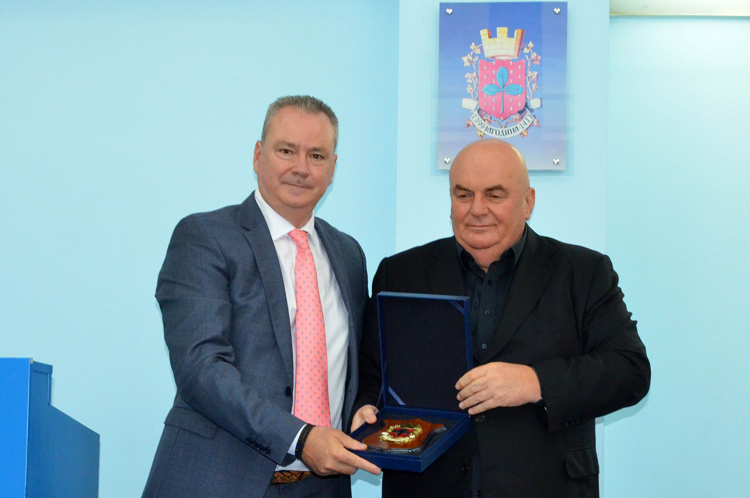 На самом почетку пријема за грчку делегацију председник Скупштине града Јагодине Драган Марковић Палма објаснио је свом грчком колеги Константиносу Коукодимосу зашто седи на хоклици, а не у фотељи.