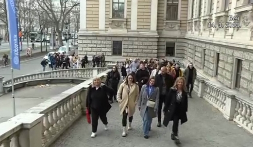 -С обзиром на то што студирам немачки језик, ја сам одушевљена што сам тренутно овде и што имам прилику да посетим бечки универзитет. Надам се да ће и остало што будемо посетили бити овако интересантно, да ћемо имати овакве водиче и остале пратиоце који нам улепшавају боравак овде –рекла је Петра Стојадиновић, студенткиња Филолошко-уметничког факултета на Универзитету у Крагујевцу.