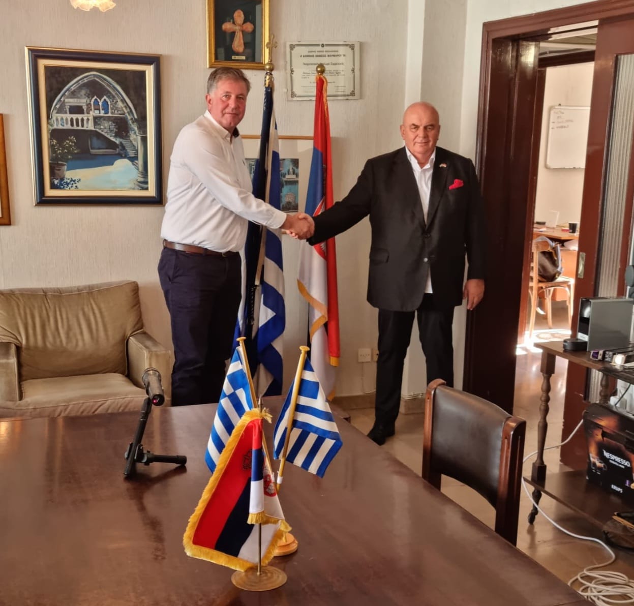Председник Скупштине града Јагодине Драган Марковић Палма, који је и почасни конзул Грчке у Србији, разговарао је у Солуну са привредником Каравакосом Ефтимосом и руководством грчко – српске Привредне коморе, председником Костасом Георгиакосом и генералним секретаром, кошаркашком легендом, Браниславом Прелевићем.