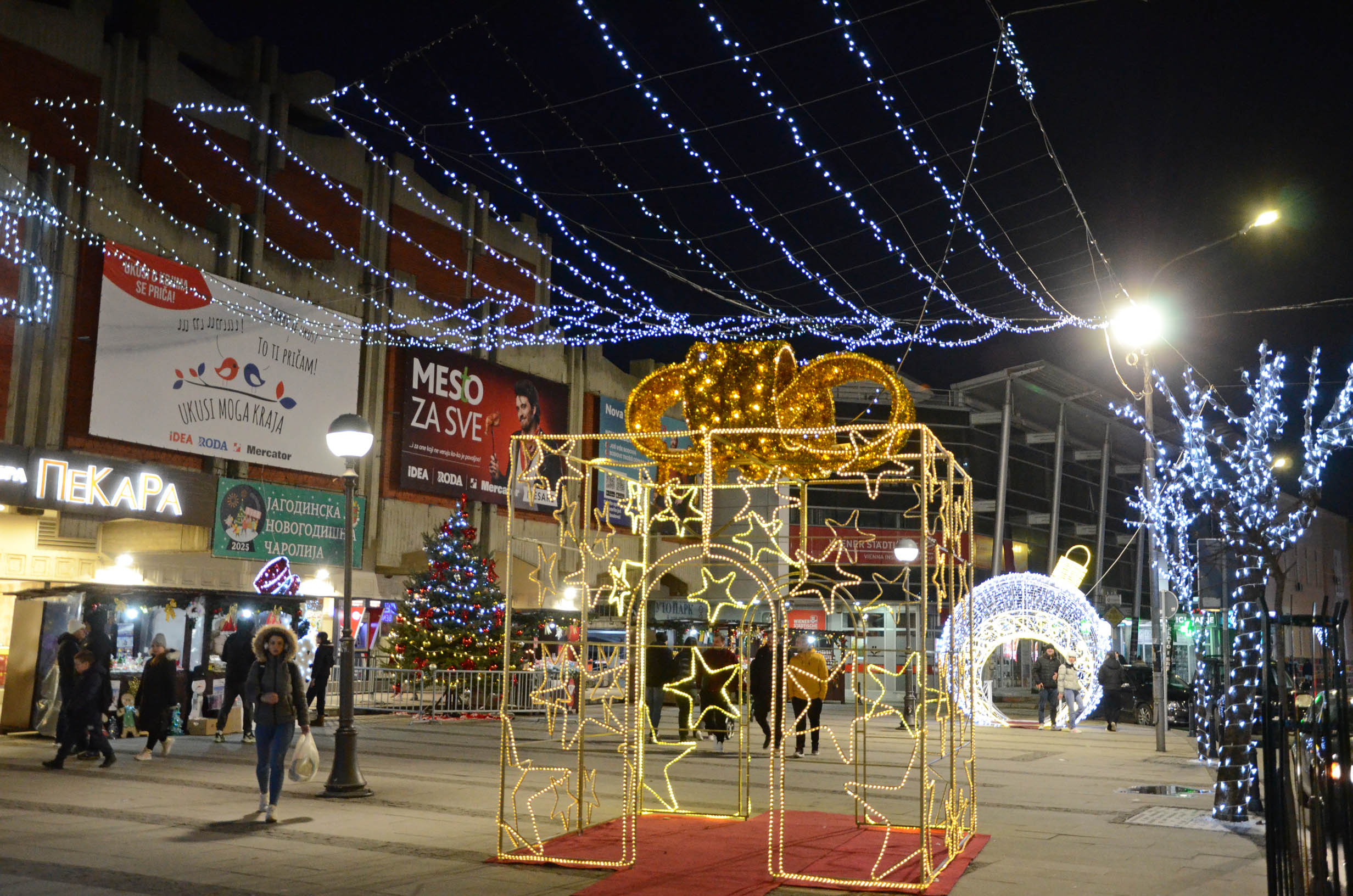 Јагодина је и овог децембра низом занимљивих манифењстација испраћа стару и дочекује Нову 2025.годину. Садржаји су бројни и намењени свим грађанима од најмлађих до најстаријих, истакла је градоначелница Јагодине Гордана Јовановић.                                                                                                                            ,,Град Јагодина жели да са својим грађанима подели овај празнични дух. Зато градимо заједно један простор и амбијент за наше грађане, односно за лепоту и радост ових празничних дана. Наш ,,Новогодишњи маркет', затим ,,Новогодишња чаролија', прелепо окићен град постали су део идентитета нашег града. Овај ,,Новогодишњи маркет' није само место трговине, то је место заједништва, разговора, сусрета и пријатељства. Централни догађај нашег новогодишњег славља уопште је ,,Новогодишња светлосна чаролија' која ће се одржати у понедељак, 30.децембра са почетком у 18 сати. Хаус аниматори ће на нашем Градском клизалишту имати светлосну представу, односно једну чаробну бајку коју ће чинити ватрена виолина, затим разни клизачи са светлосним ефектима. Биће то прелепо за децу и прошле године смо то организовали, као и ранијих година, тако да се очекује да се наши најмлађи суграђани заиста радују, да о томе причају и памте као један величанствени догађај. Грађанима Јагодине желим да Нову годину дочекају у миру, љубави и срећи, да им 2025.година буде испуњена здрављем, срећом и успесима на свим пољима. Срећно и весело вам било грађани Јагодине', поручила је градоначелница Јовановић.