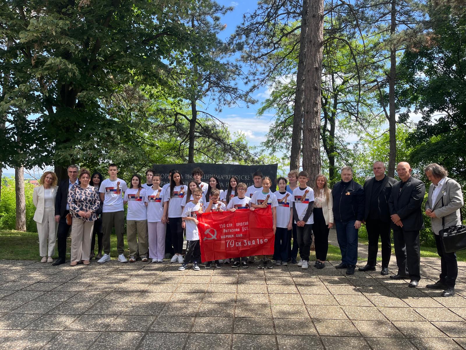 На идеју руководства града Јагодине, представници амбасаде Руске Федерације, као и представници јагодинске локалне самоуправе, одлучили су да уприличе дружење руске и српске деце, како би заједнички указала поштовање према жртвама Другог светског рата и неговала традиционално пријатељство два народа. Са њима је био и заменик амбасадора Руске Федерације у Србији Александар Конанихин, који је том приликом истакао важност оваквих акција за очување историјског наслеђа, међусобних веза и културе сећања.