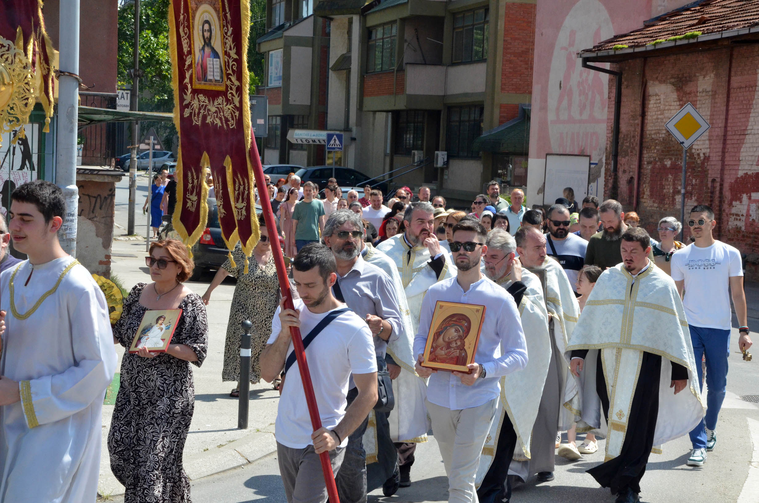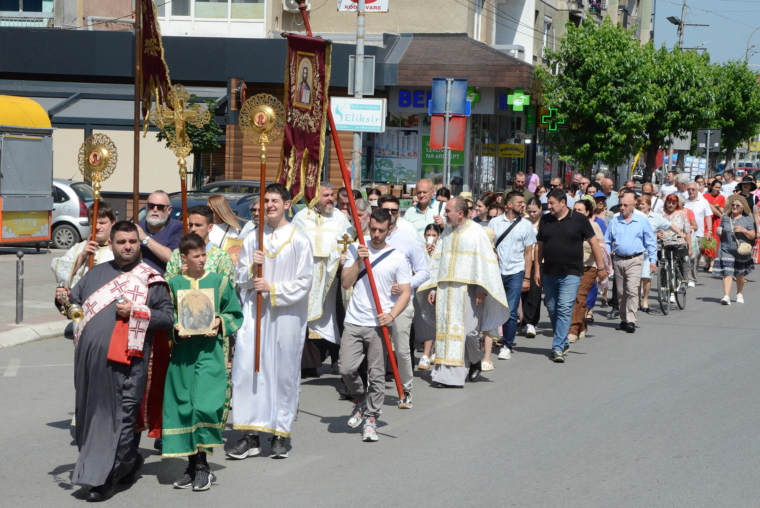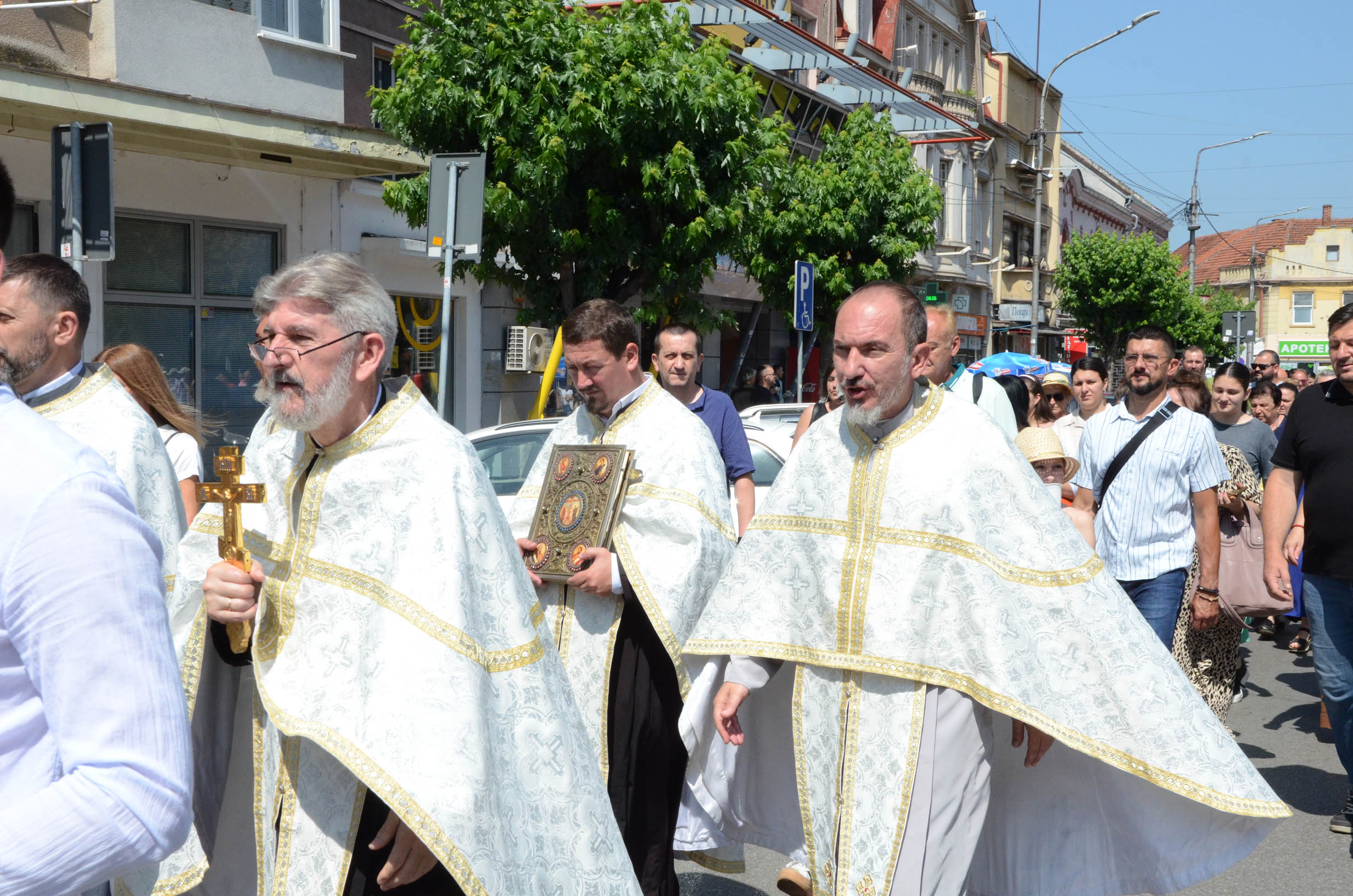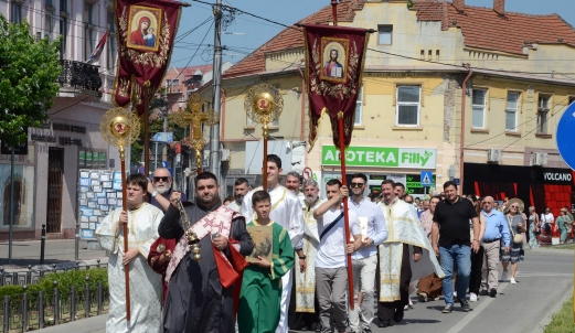 ,,У Јеванђељу Господ каже својим ученицима да бораве до педесетог дана после његовог васкрсења у Јерусалиму, а након чега се десило једно велико чудо, које је жеља Божја, да по целој васељени сваки човек има могућност да чује живу реч Јеванђеља, јер су апостоли, од којих већина није била образована, уз помоћ Светог Духа а на данашњи дан, проговорили многе стране језике и кренули по свету да шире хришћанство. Управо и ова литија кроз коју ми кажемо: изиђимо, носи благодат свима, јер и ми ширимо, попут апостола, реч Божју. Суштина прослављања било ког празника у православној цркви јесте служење свете харистије, јер се тако сједињујемо са самим Богом  кроз Свету тајну причешћа. Након литургије ми идемо до записа, где приносимо један део молитве за здравље, спасење, напредак и благостање, све оно што је потребно људима. Те молитве настављају се нашим молитвеним ходом, литијом, до Скупштине града и назад до цркве’’, рекао је протојереј Милан Ђорђевић, старешина цркве Светих апостола Петра и Павла у Јагодини.